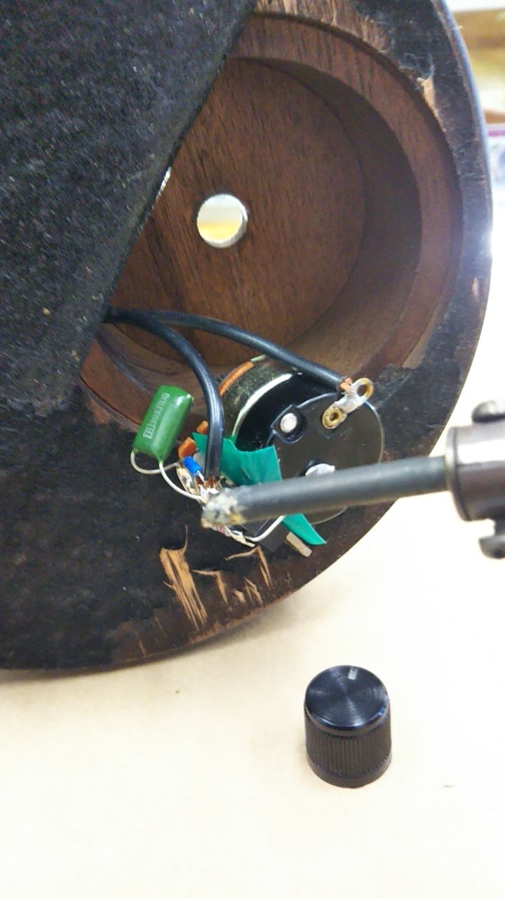 切れている線を芯出しして半田付け、あとは組み直して完成です。