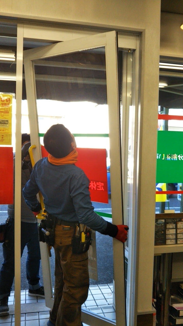 その作業およそ1時間半、扉が無くて店内が外と同じ寒さに、、、