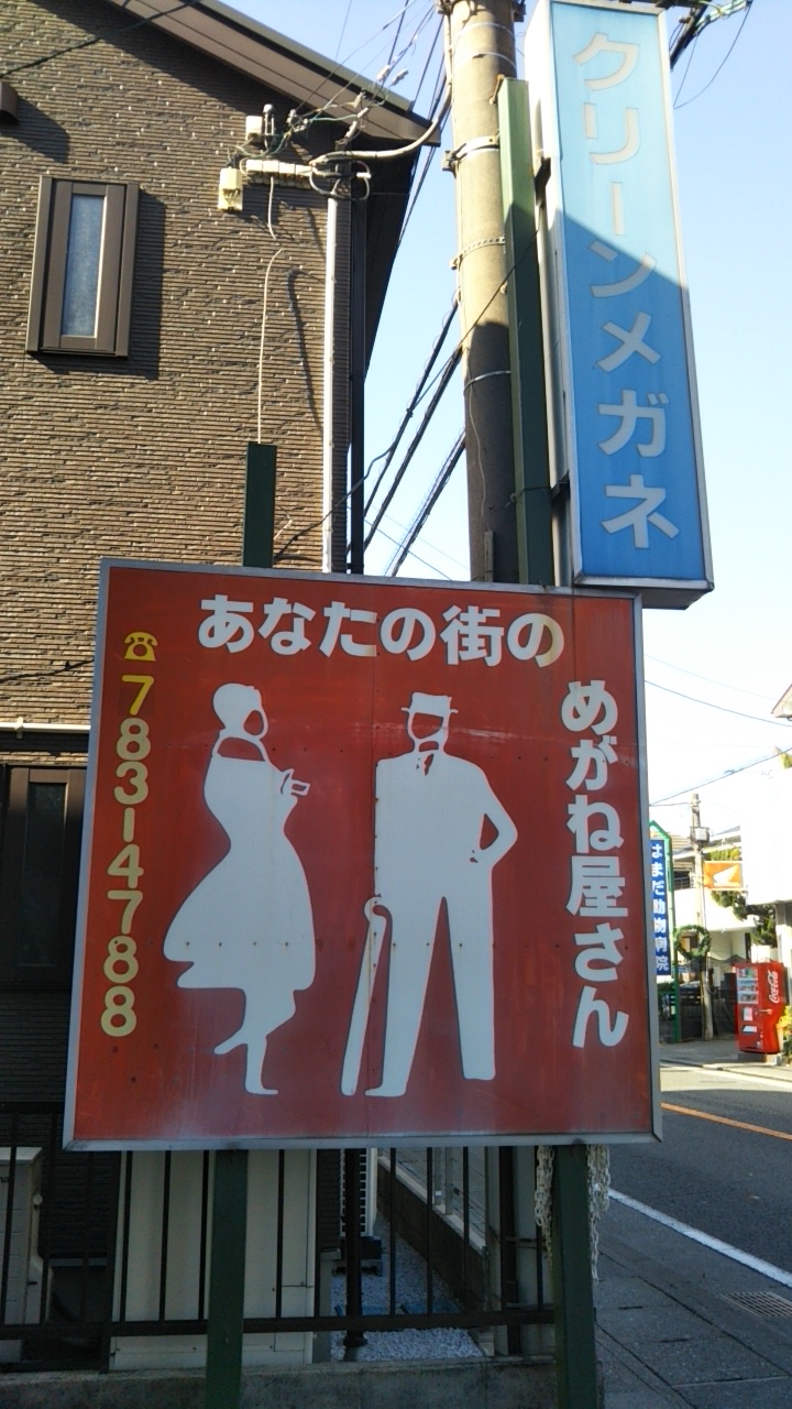 手前の赤い文字のめがね屋さんの電飾看板と奥にある赤い男女のシルエットの板看板の痛みが激しくなってきました。