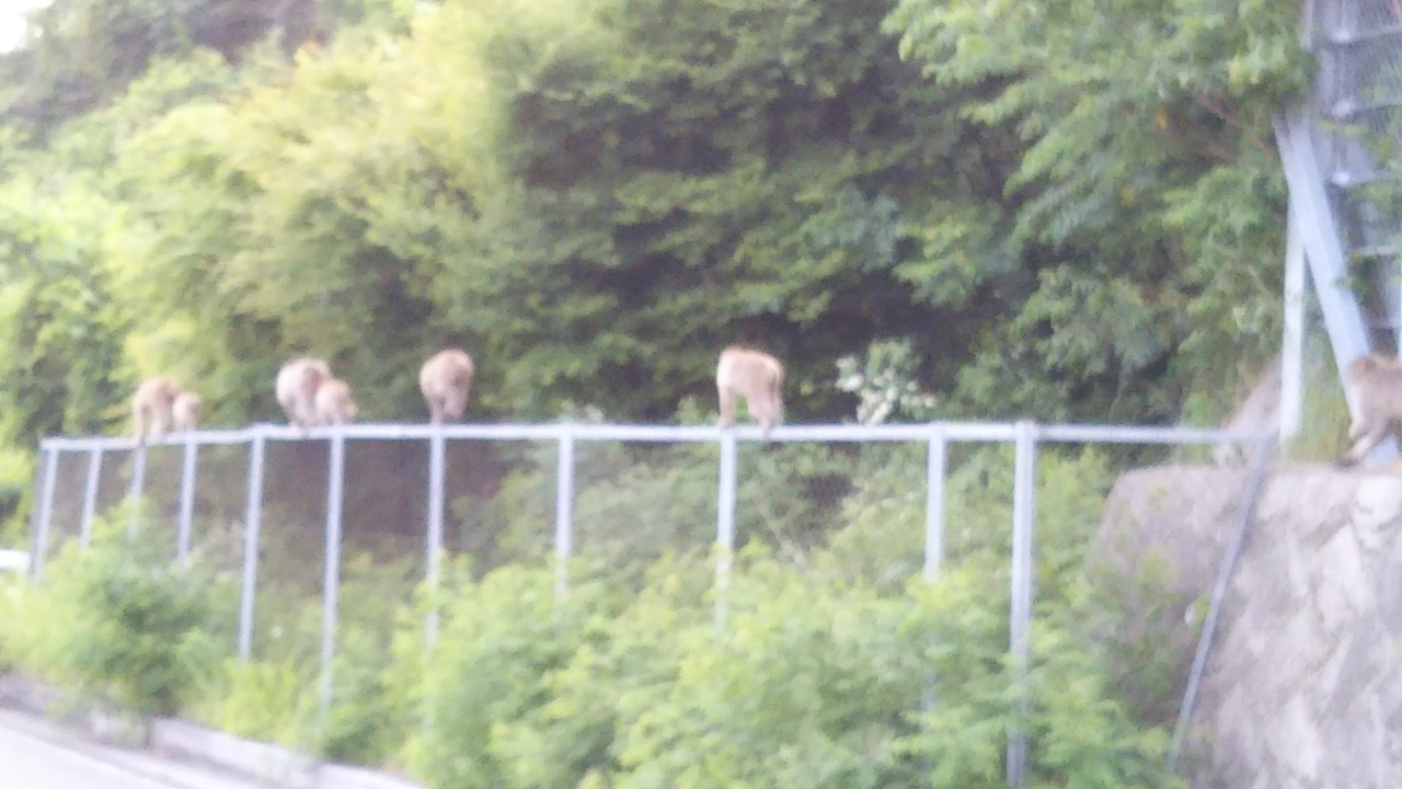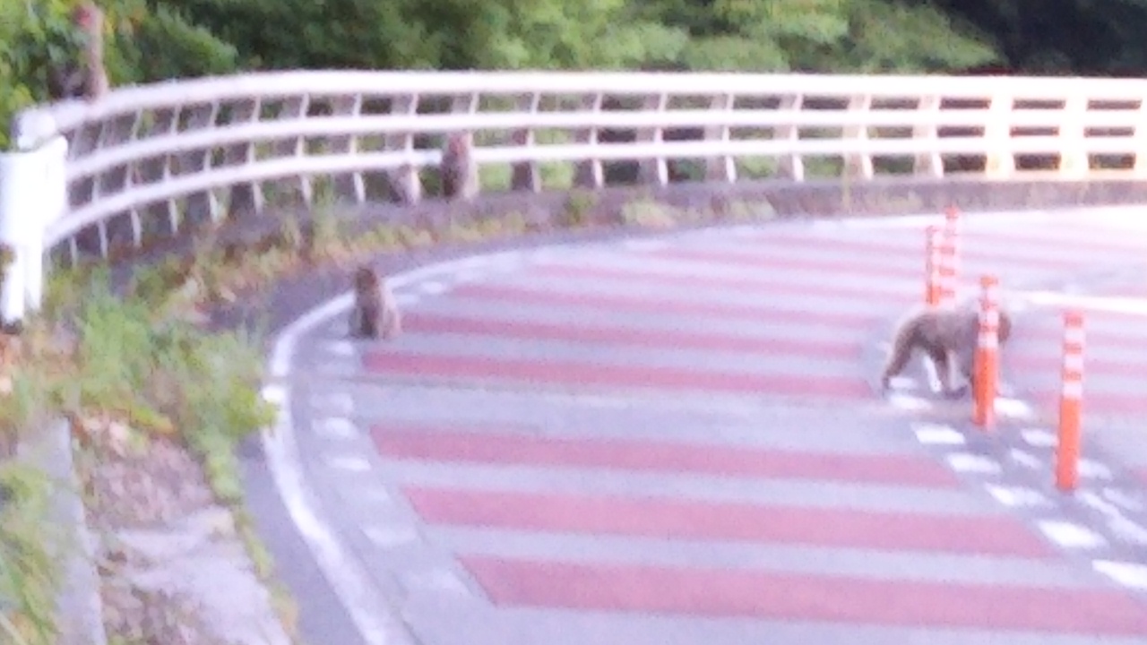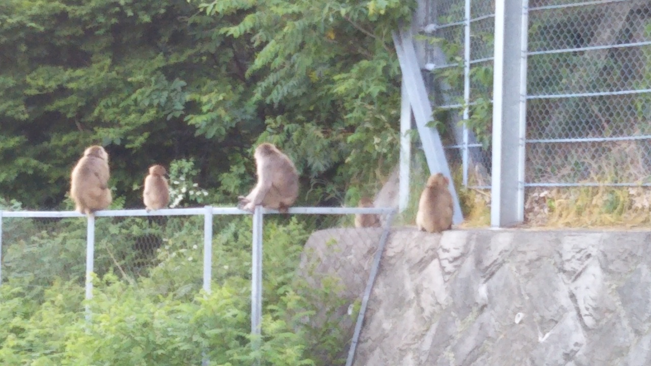 柵に腰かけている風景はのどかに感じますが、こんな場所で出会うのも餌がなくなってきているのでしょうか?農家の方々の被害は年々深刻なようですし、上手く共存する方法がなかなか難しいようです。