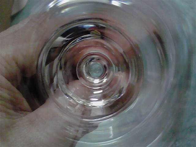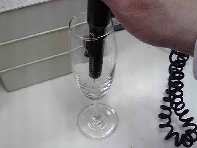 はい、早速グラスの底にチョチョッと傷をつけました。