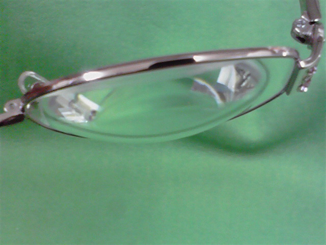 上の写真は、今日加工して仕上げたメガネですが、よーく見ていただくとレンズにちょっと変わったところがあります。