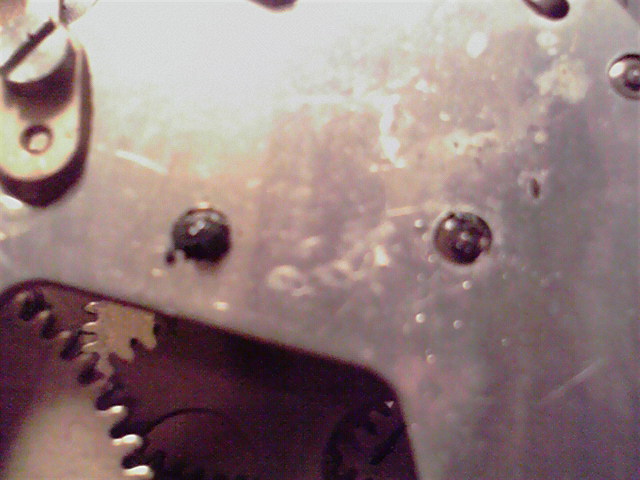 文字盤を外してみます。正面からの状態は綺麗なのでとりあえず注油をします。