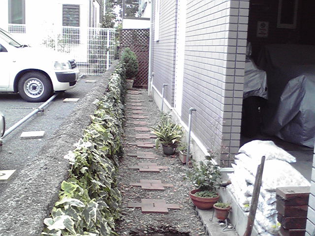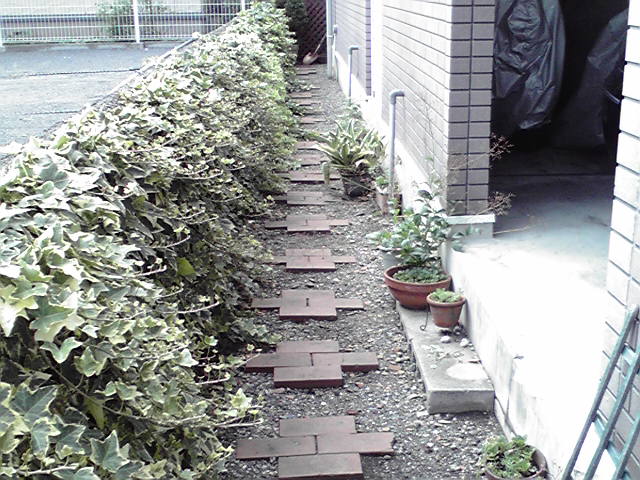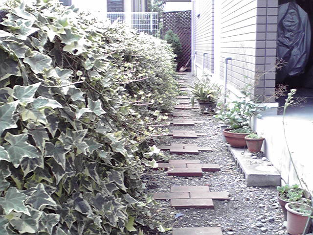 さて、今年の課題は、家の裏に行くための通路をなんとかスッキリと、今後のメンテナンスも楽にすることです。
