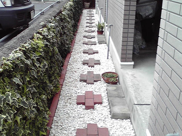 後はレンガをまた置いて、玉砂利を敷き詰めたら終了です。