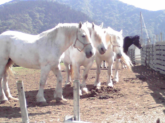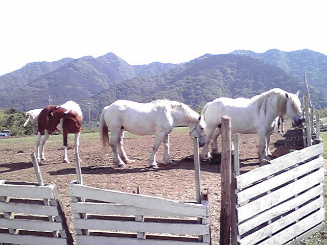 白馬が3頭並んでいるのは、なんだかイタズラ兄弟がこそこそナイショ話してるみたいですね!