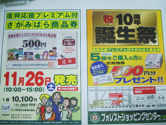 そして相模原市より、11月26日(土)に復興応援プレミアム付商品券が発売されます。
