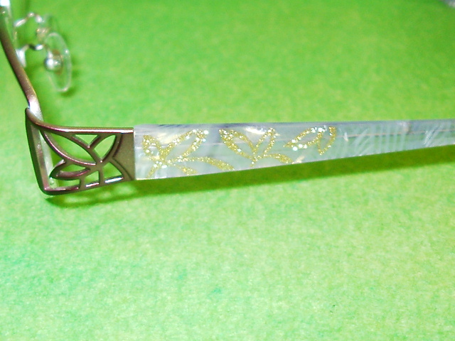 サイドのボリュームあるテンプルに、草花をデザインしたようなポイントが目を惹く逸品です。