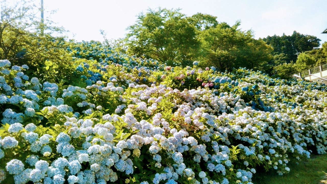 帰り際に、今は水の郷駐車場の紫陽花が満開だと教えていただきました。