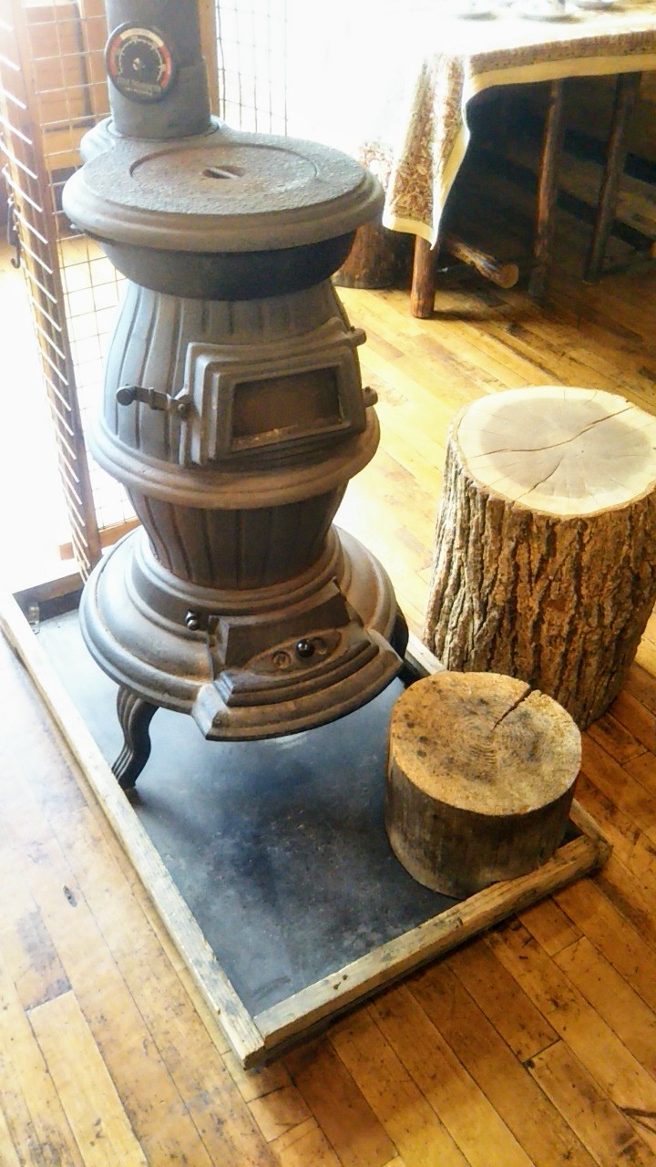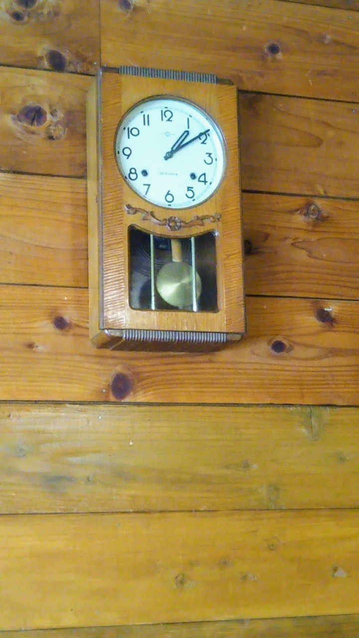 寒い時期には大活躍の薪ストーブ、手巻きの掛け時計も良い音色です。