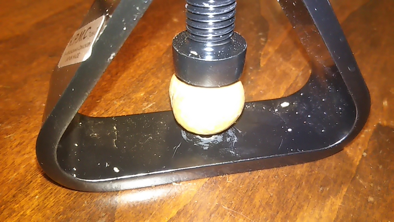 そこでこのマンリキの出番です、殻を挟みクルクル締めこむとバキッと大きな音を立て、そして殻をかなり飛散させながら割れるのです(散らかります)