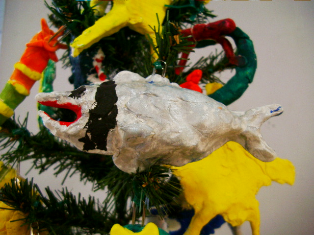 今年もご近所の小学二年生がみんなで、クリスマスツリーに付ける自慢の手作りのオーナメントを飾りつけにやってきました。