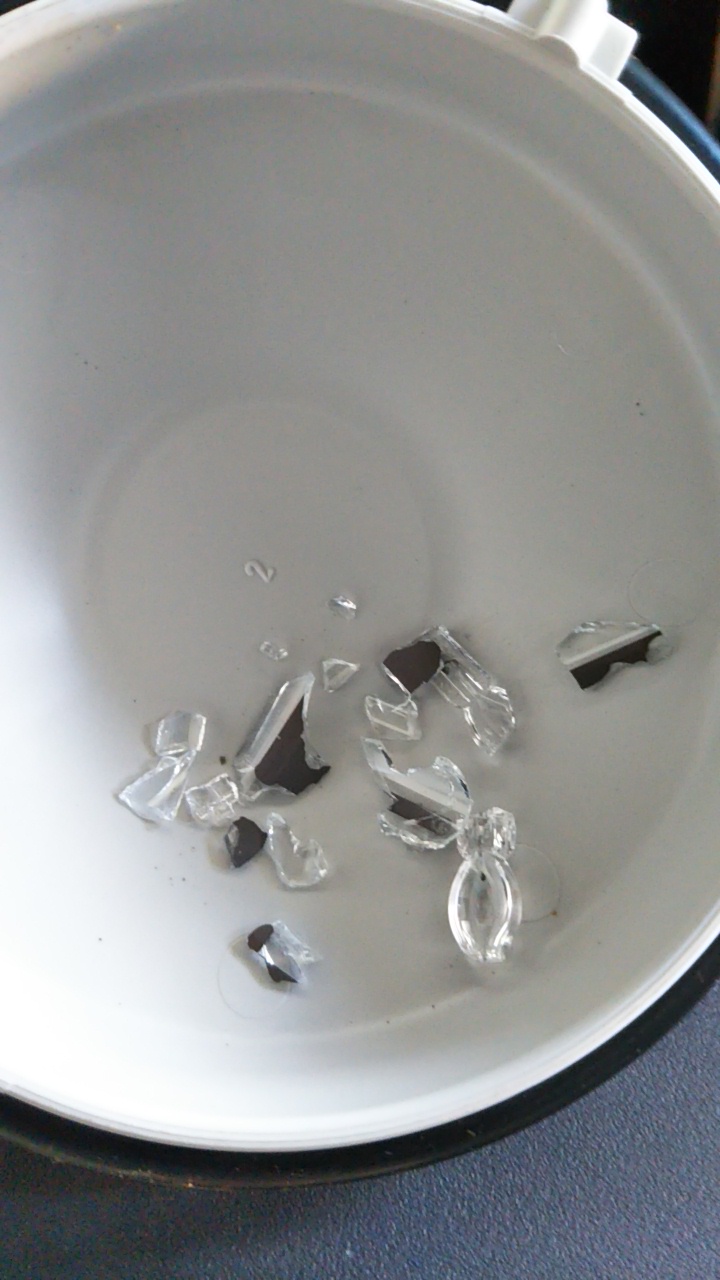 割れた破片を取るのに、棒の先にガムテープをのり面を表に巻き付けて、くっ付けて取りました