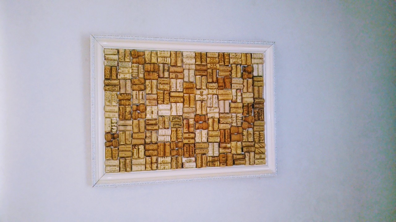 この大きな額と今まで飲んだワインのコルクを利用してD.I.Yです。